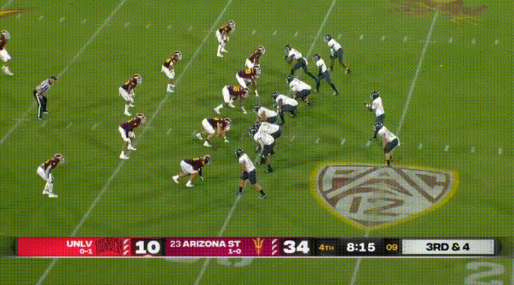 UNLV had less-than-mobile QB Justin Rogers (he of the famed Cheez-It Bowl), and so this sack is a little bit on him, but his offensive tackles are beat on both sides of him: