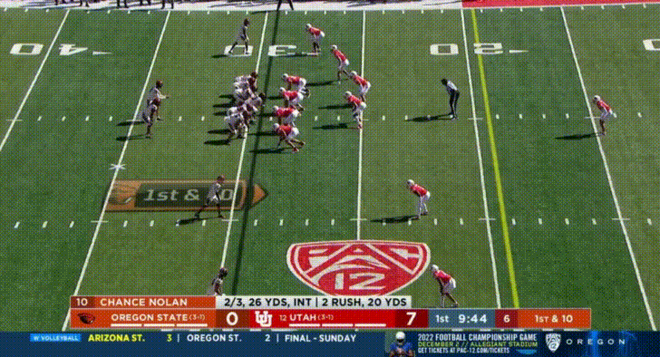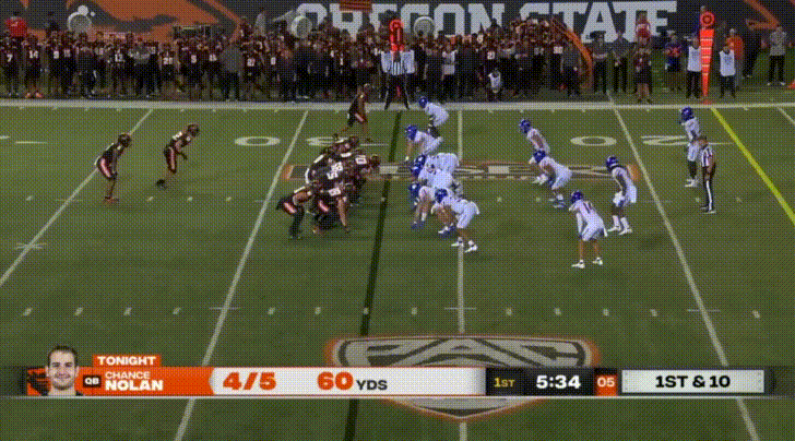 I mentioned earlier than OSU loves their play-action. Here’s Nolan making a nice throw under pressure:
