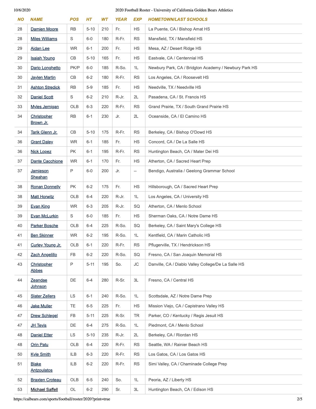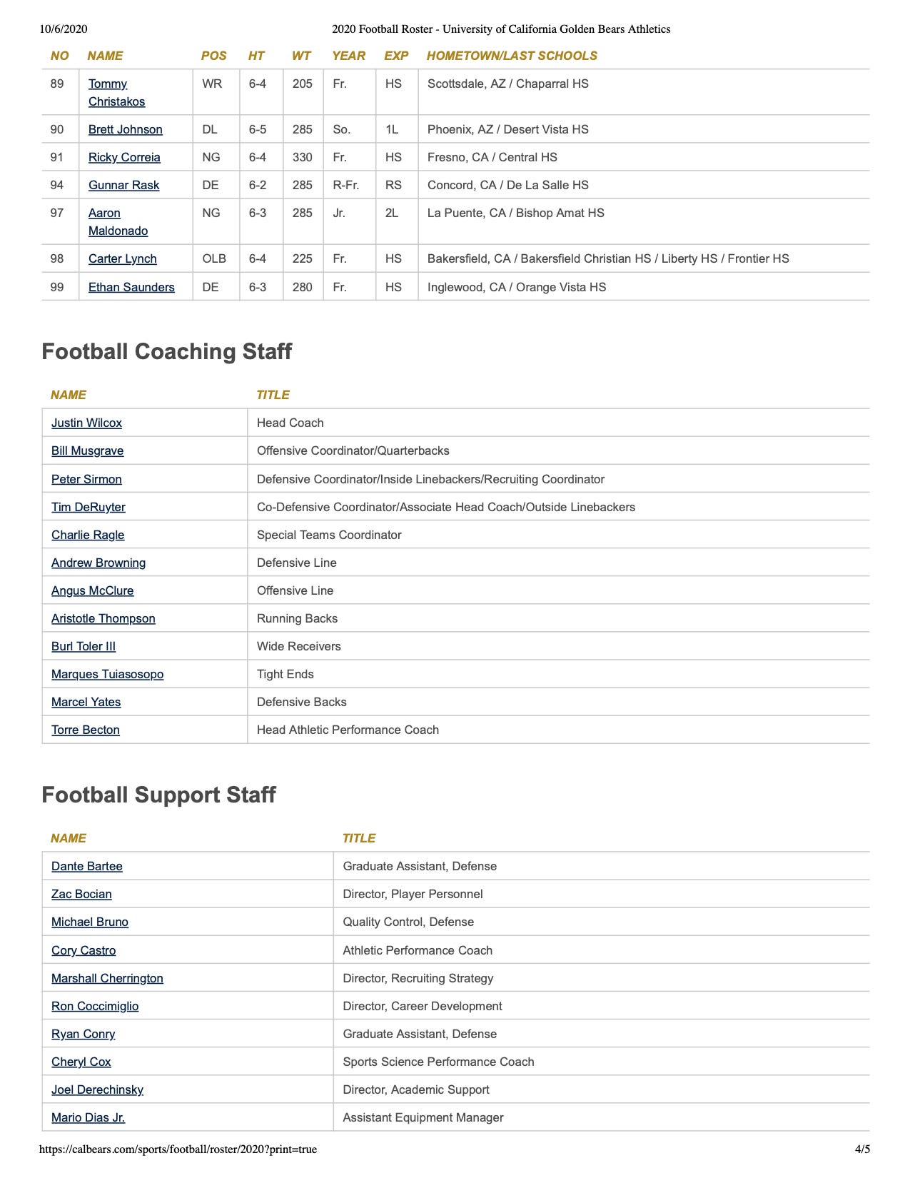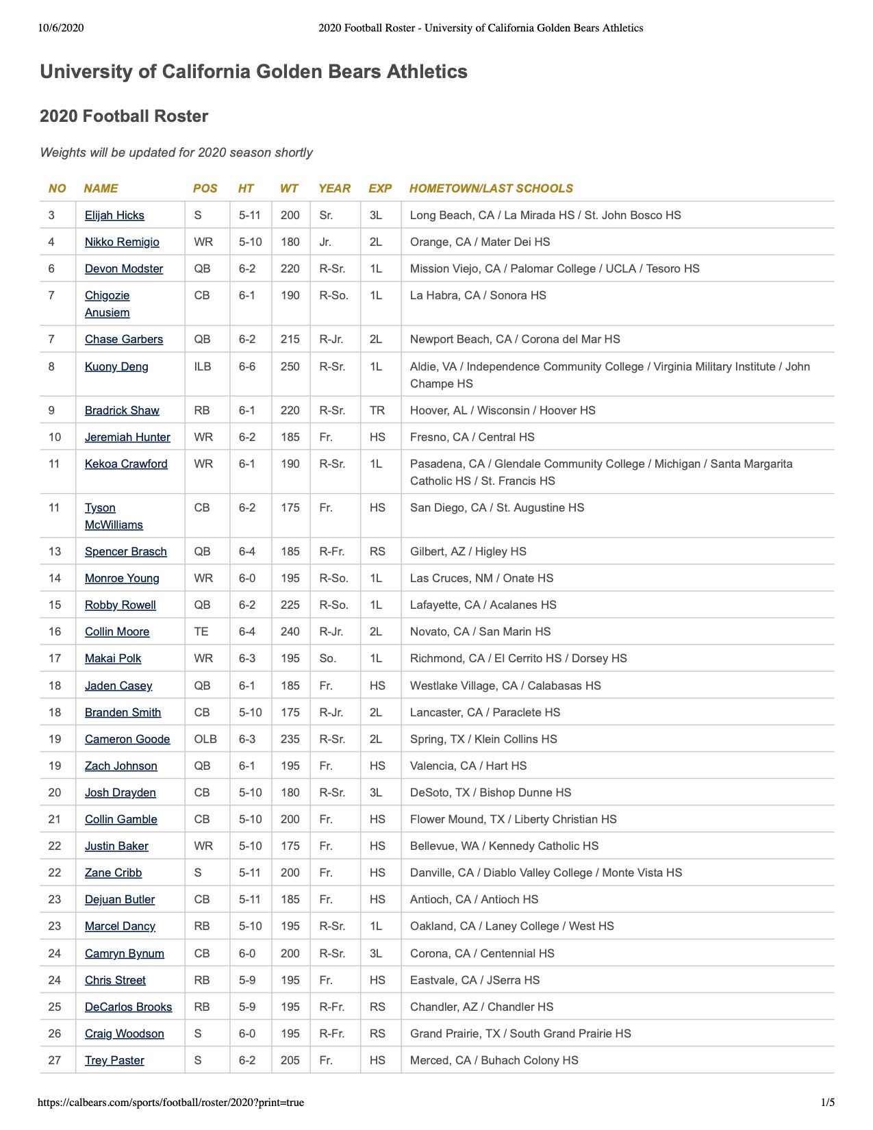 Cal Athletics released the 2020 Cal Football team roster Tuesday evening. Some notable names were missing, along with some number of changes. The missing players are listed below, with reasons where applicable, followed by the full roster.