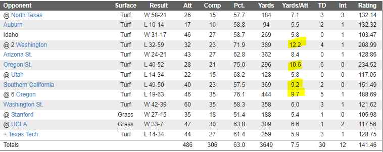 7.7 Yards/pass attempt, 85th in the nation, 9th in the Pac-12