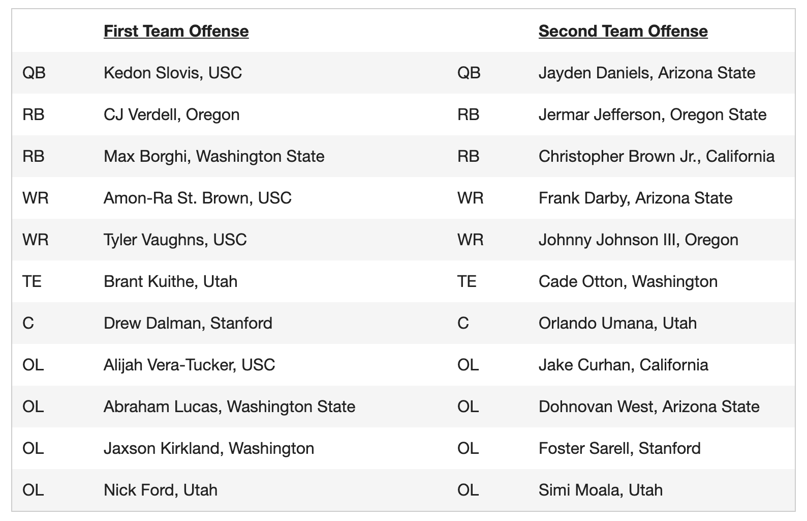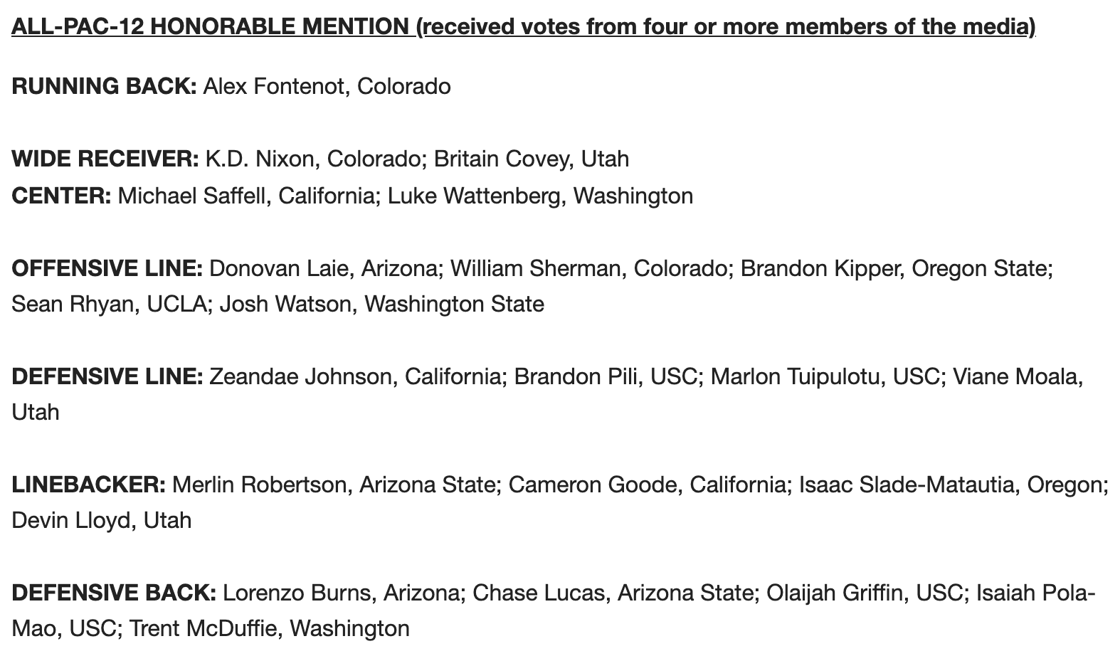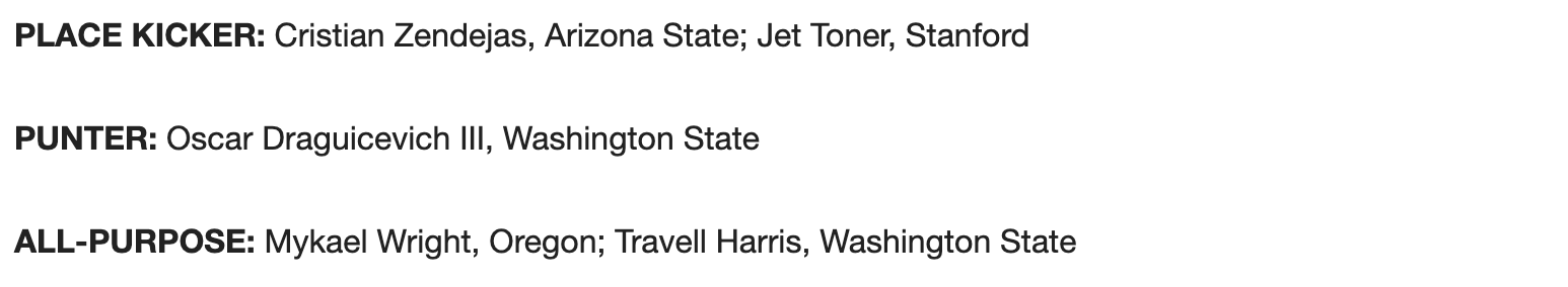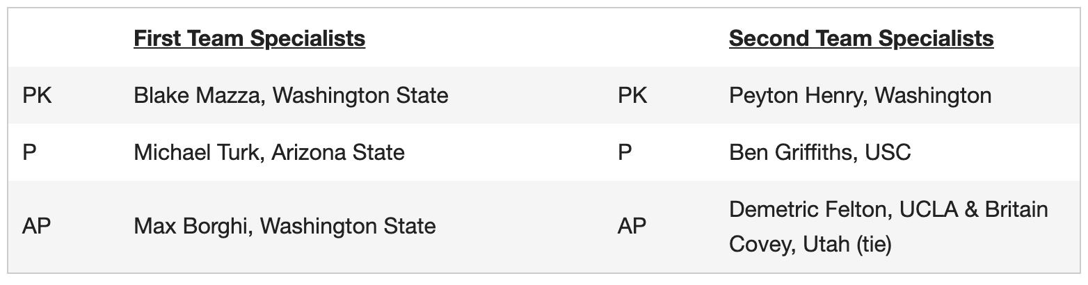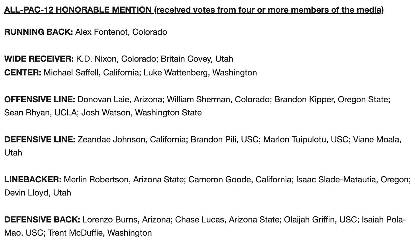 Ahead of the start of the Pac-12 Season, the conference announced its preseason picks for its All-Conference team. DB Cam Bynum, who returned for his senior season, was the only First Team selection. RB Christopher Brown Jr., OL Jake Curhan, DL Brett Johnson, LB Kuony Deng and DB Elijah Hicks were selected to the second team. OL Mike Saffell, DL Zeandae Johnson and LB Cam Goode were honorable mentions.