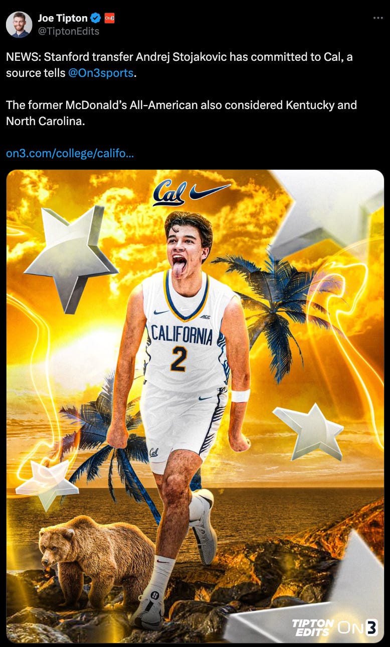 Mark Madsen has landed their biggest transfer portal commitment of the 2024 recruiting class. Andrej Stojaković is coming to Cal.