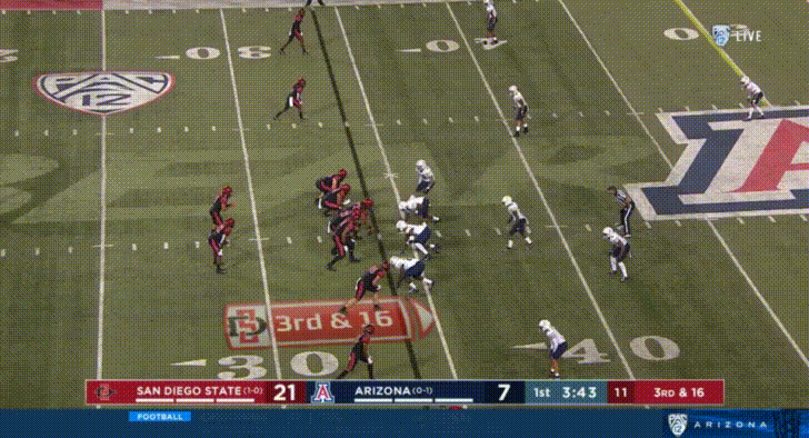 Mo Diallo plays the “anchor” position for Arizona, which basically means he’s the strongside defensive end. Diallo, a transfer from Central Michigan, has been a pleasant surprise this season after the starter, JB Brown, was lost for the season due to injury. Diallo has been making his presence felt, already leading the team in sacks despite not starting a game until a couple weeks ago (against Colorado, I believe).