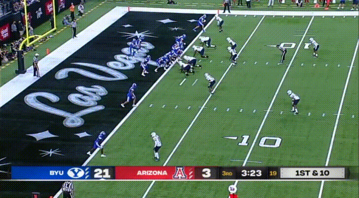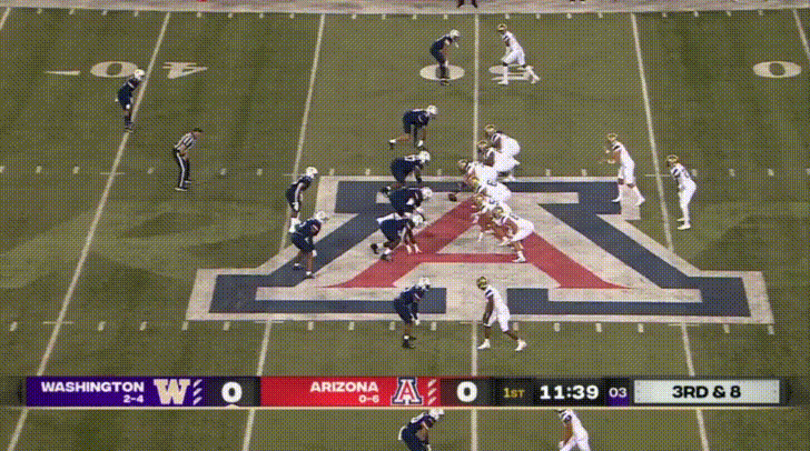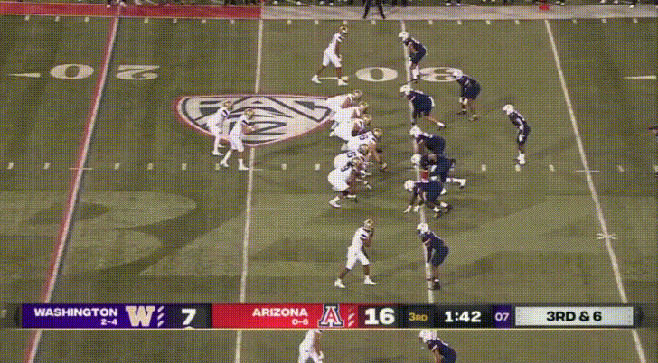 Now that that’s out of the way, I should mention that Arizona runs a 4-3 defense, with two corners, two safeties (a free safety and a “rover”, i.e. the strong safety), and one “viper,” which is effectively a hybrid linebacker/safety position. This easily transitions to e.g. a 4-2-5 cover-1 defense, with the free safety deep, the viper replacing the strongside linebacker (to cover the tight end), and the rover rotating over to cover the slot receiver. The defensive coordinator is Don Brown, who was previously the defensive coordinator under Jim Harbaugh at Michigan, and he led some of the top defenses in the country at Michigan. Don Brown’s nickname is “Doctor Blitz.” The over/under on number of times this will be mentioned during the broadcast is 4.5. After all, what’s the point of having a doctorate degree in blitzing if someone won’t bring it up all the time? Unsurprisingly, Don Brown has an aggressive style of defense, with—you guessed it—a lot of blitzes. No one will bring 5- or 6-man rushers more often than Dr. Blitz, with the occasional cover-0 all-out blitz mixed in there. Arizona is counting on creating havoc to cause the quarterback to make mistakes or have the offense moving in the wrong direction (even in the endzone: Arizona has scored multiple safeties this season), and teams will throw a lot of screens and quick outs to combat this (and occasionally the big play that always happens when you keep leaving overmatched defensive backs on an island when you blitz too many). Of course, you can imagine that these busts happen more with Arizona’s personnel than with Michigan’s talented and often NFL-bound players.