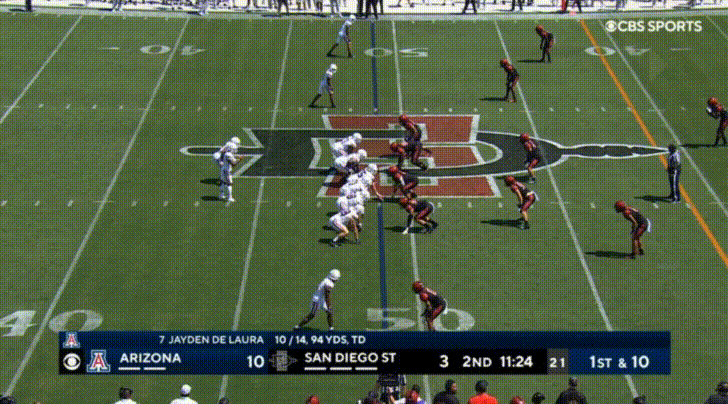 QB Jayden de Laura is obviously a dangerous player on his feet, and it seems like Arizona finally started to recognize and take advantage of this.