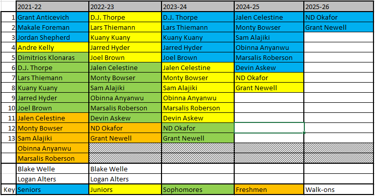 My assumption is that Cal is done with recruiting for a while. Here’s the updated scholarship chart, which assumes that Askew will be eligible next year: