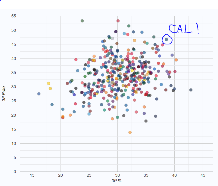 The Bears are currently 14th in the country in 3 point attempt frequency, and 12th in the country in 3 point percentage. There are teams that are shooting a bit better, but they don’t take that many 3s. There are teams shooting more threes, but they’re not as accurate. No team is better at creating value from behind the arc than Cal is, and they’ve done it against every team on the schedule, good or bad.