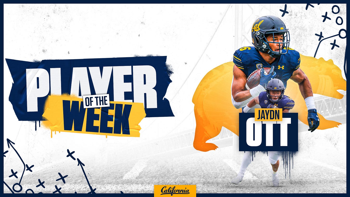 Triple J’s! From Jeremiah to J Mike to Jaydn, it’s been a flurry of young energetic talent in the Cal offense. Understandably, the results may have not been present when putting everything together, but triple J really put forth their best effort and put their individual talents on display. Jaydn Ott burst out on the scene quickly, with a 100 yard rushing performance in his debut against UC Davis, followed up by a multi touchdown game against UNLV. This doesn’t begin to sniff the monster performance against Arizona, where he literally willed his way through the Wildcats with 274 rushing yards and 3 touchdowns. His production slowed as the season went on, mostly as a product of inconsistent offensive line play, but his influence cannot be understated. Ott’s final stats tally 170 rushes for 897 yards and 8 touchdowns while also racking up 46 receptions for 321 yards and 3 additional touchdowns. I said in my preview article of him that he needed to bolster his receiving skill to see the field and boy did he do that and then some. He may have had a rather forgettable end to the season with the fumble against UCLA but his season will not be defined by that.