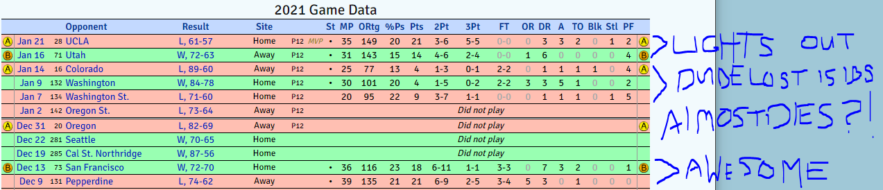 21 points on 14 shots vs. Pepperdine, 18 points on 12 shots vs. USF, 14 points on 10 shots vs. Utah, and 21 points on 11 shots vs. UCLA, plus he’s been flashing impressive passing from a forward.