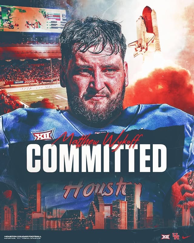 Offensive lineman Matthew Wykoff is back in Texas, picking Houston as his new program.