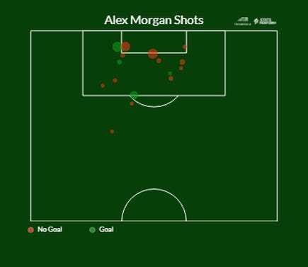 While she did not do too much in matches during her brief stint with the Tottenham Hotspurs Women earlier this year, Morgan and her hot start have allowed her Orlando Pride squad to have a 3-0-1 start in their 2021 NWSL campaign. All four goals (3 via her left foot, one via her head) came inside the penalty area as Alex Morgan also became the first NWSL player to score in the first four matches of the season.