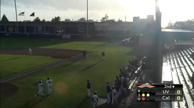 When Cal was with the Pac-12 Conference, they would broadcast their games locally through the Pac-12’s Bay Area cable expansion channel and stream baseball games exclusively on the Pac’s website and “Pac-12 NOW” app, and they were not alone in the ugly broadcast and production quality that gave audiences an awful viewing experience from home. Cal’s notorious “score bug” (a small graphic overlay that displays real-time information during live sports broadcasts) would have some teams with their abbreviations in capitals- others without. The camera would be in a fixed position behind home plate, and the ability to follow the ball off the bat was limited to the abilities of the camera person operating it.