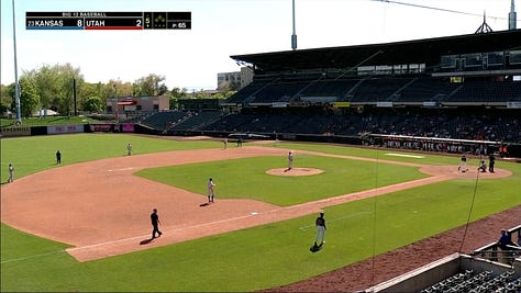 Arizona, Arizona State, and Utah (Colorado does not field a baseball team) have joined the Big 12 conference and have been put on a broadcasting display for college baseball fans to watch in an appealing and clear format. ESPN+ and the ACC supply the teams with a main camera in center field that major league baseball teams use in their gameday shows, as well as multiple angles around the stadiums behind home plate, above each dugout, and scattered throughout the crowd to bring the fans into the productions.