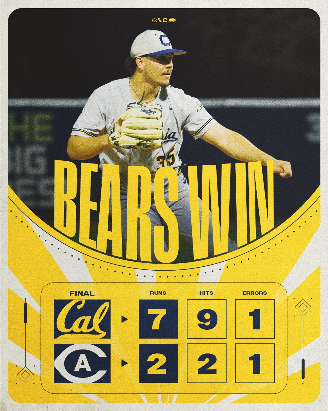Grove would pitch 1.2 innings for the Bears, striking out two, hitting one batter, and not allowing a walk or a hit in his relief appearance before Jett Wright would come in to relieve him in the 6th. Cal added two more in the 6th on a two-out triple from Gannon Snyder, followed by a two-run home run from Jett Kenady, his first career home run, to make it 4-2, and Hideki Prather would hit an RBI-single in the top half of the 7th to bring in Ethan Kodema to make it a three-run ball game.