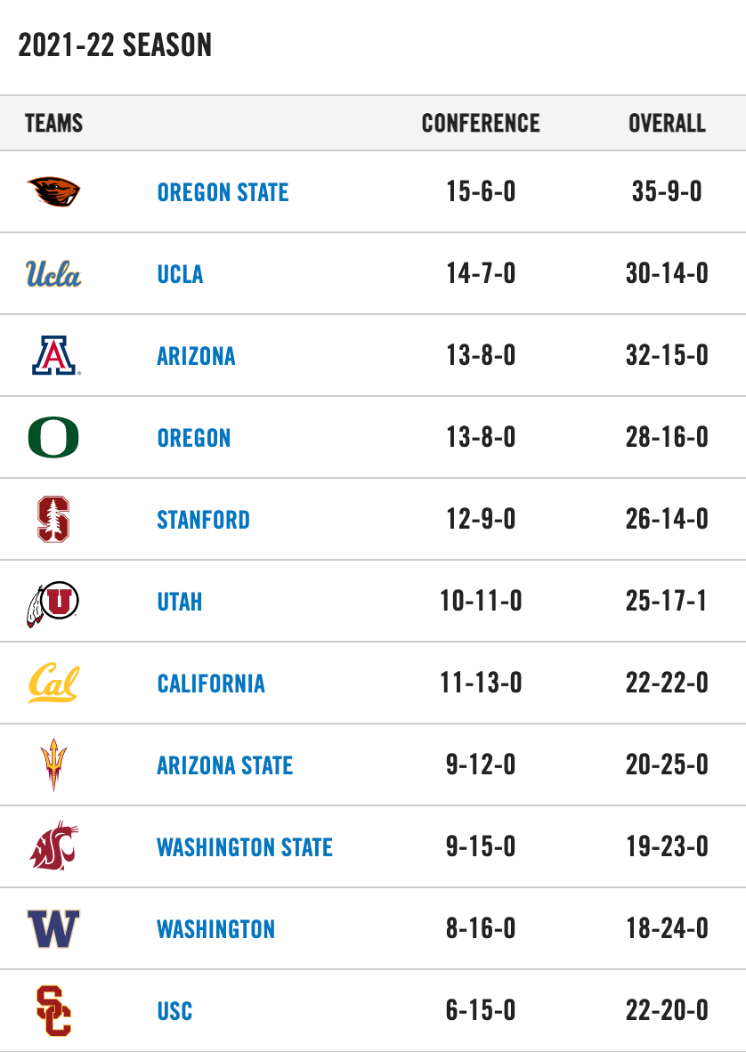 Below are the current Pac-12 Baseball Standings (prior to the weekend of May 6th):