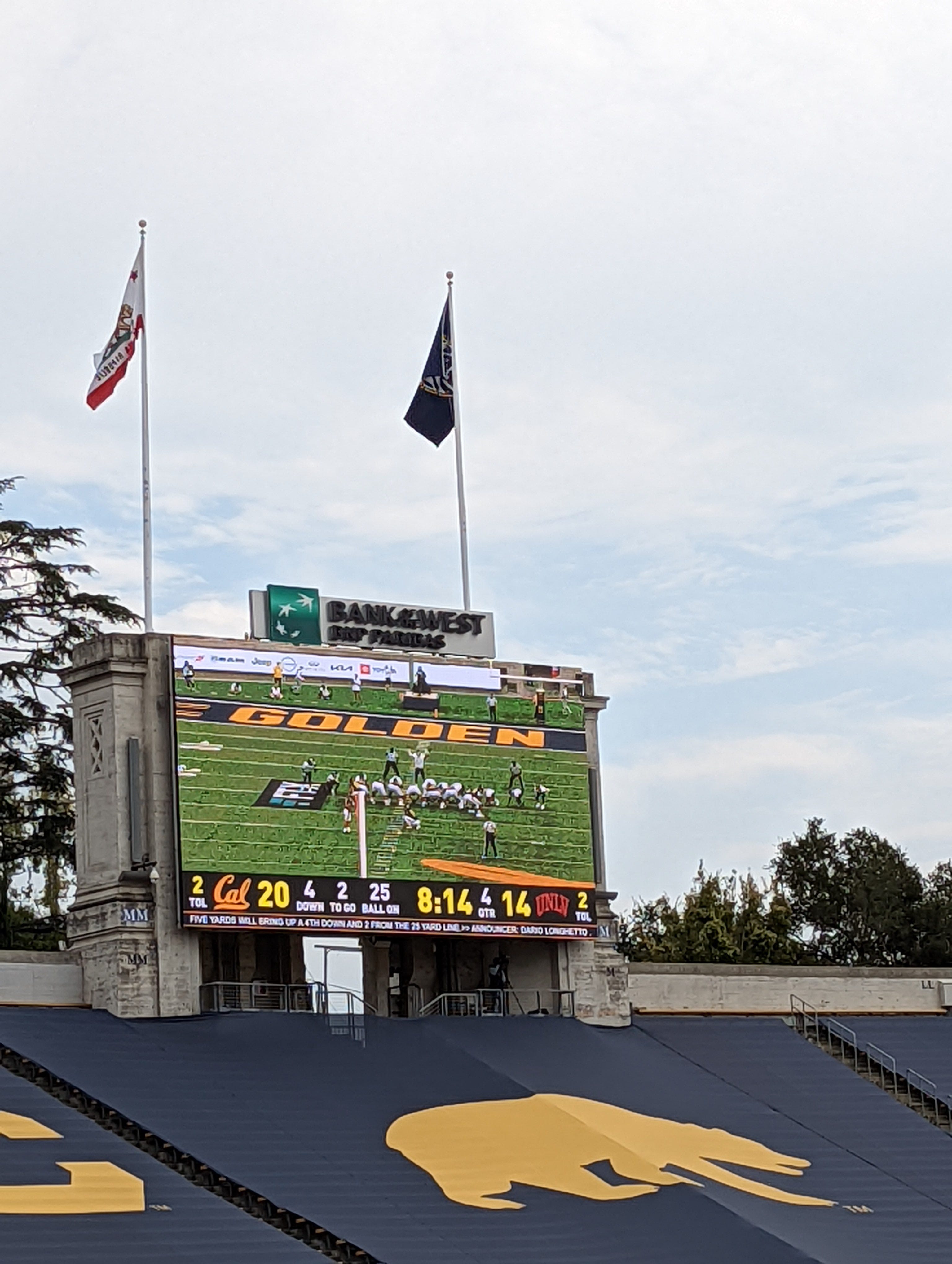 Cal got new videoboards, but for some reason the natural turf is getting more pixellated by the week. Perhaps we will enter the Metaverse in these boards by end of season, where we can store our crypto, sponsored by NFX.