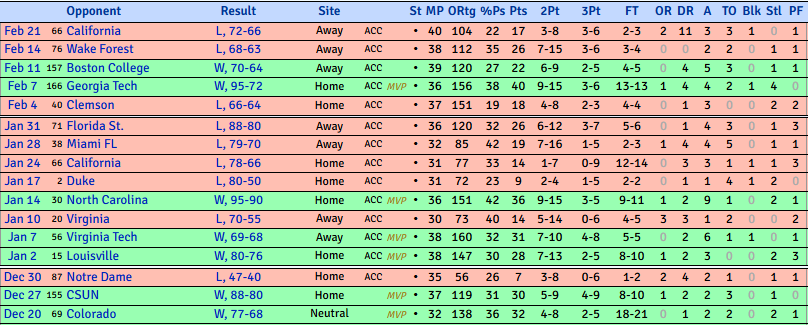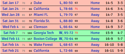 The Cardinal got off to a pretty good start this year. Like Cal, they did a solid job against a pretty weak non-conference schedule, then pulled a couple upsets in early ACC play. But I think the rest of the conference has figured them out: