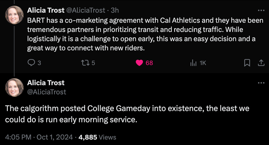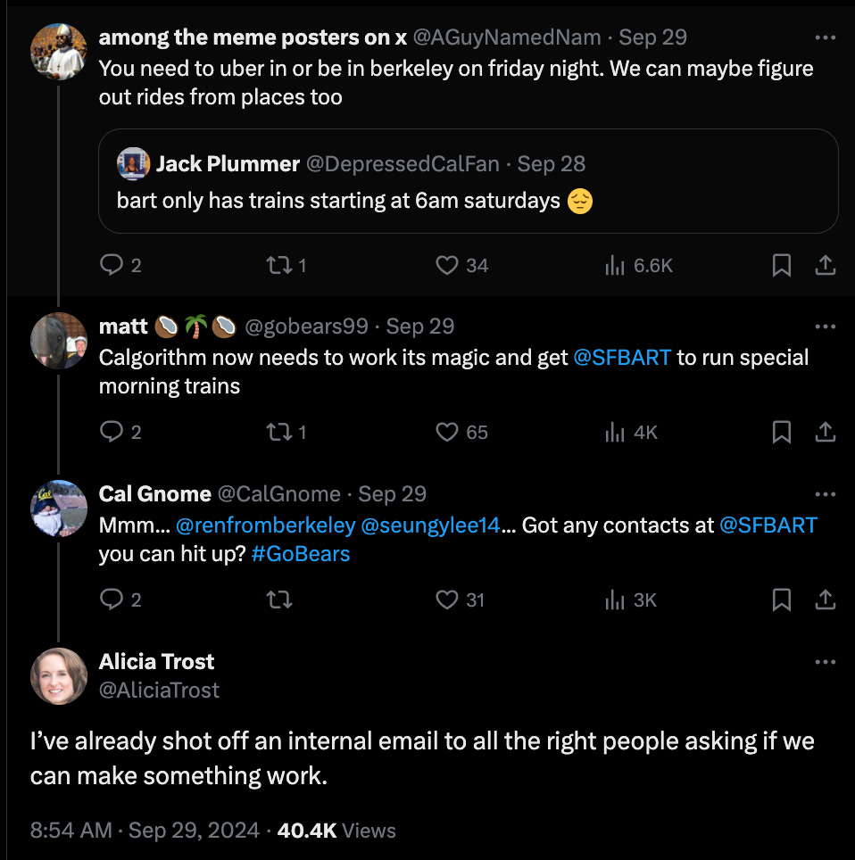 “BART has announced early trains to College Gameday in Berkeley using a Calgorithm meme” is a sentence that is factually true. This is the world we live in.