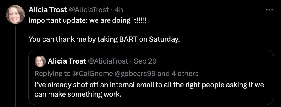 Alicia Trost, BART’s Chief Communication Officer, had this to say.