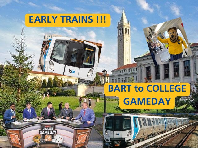 There were early concerns about getting to Berkeley that early via public transit, as BART usually does not open early enough for Cal fans to arrive at the College Gameday site in Memorial Glade by 5 to 6 am.