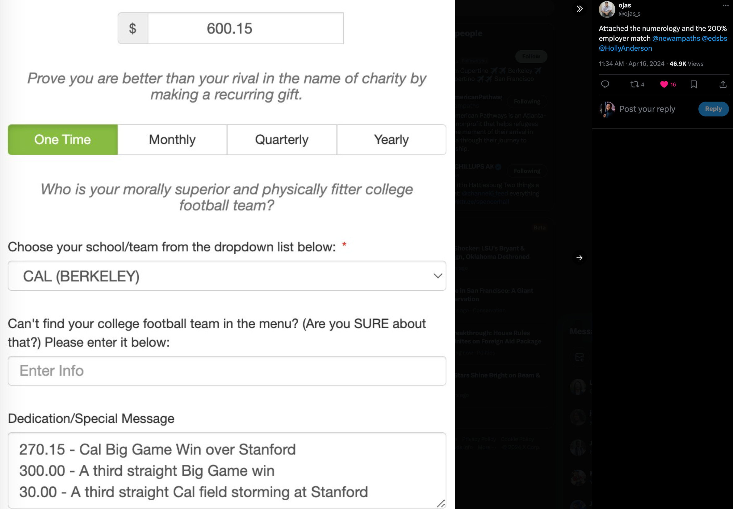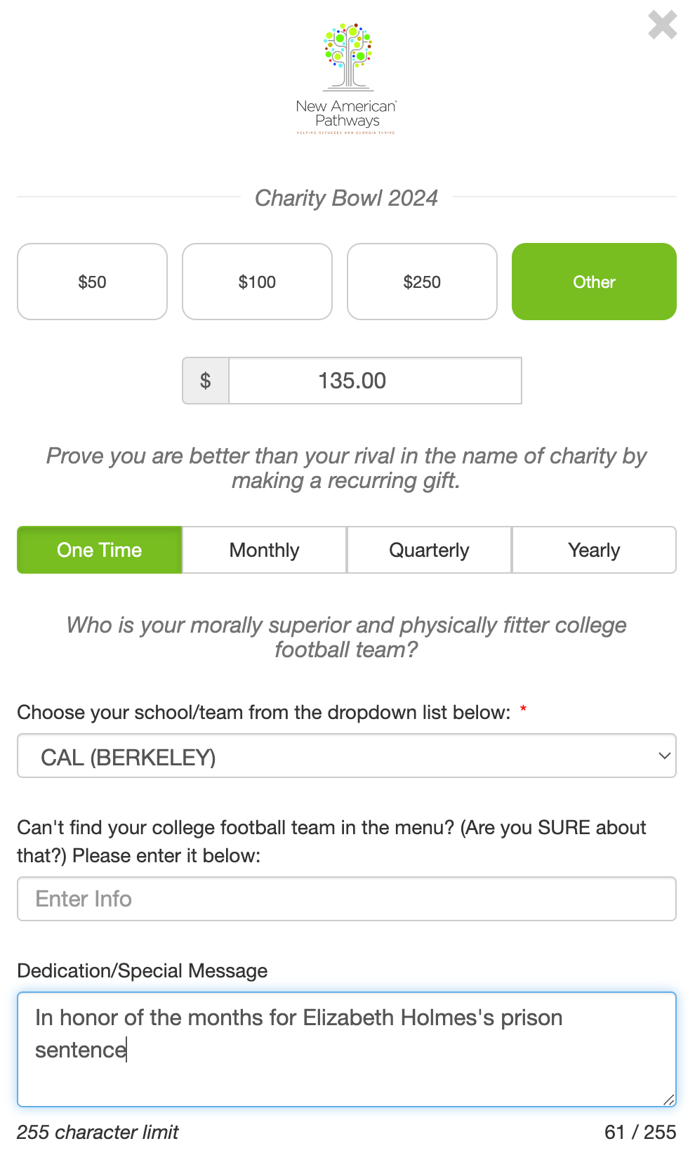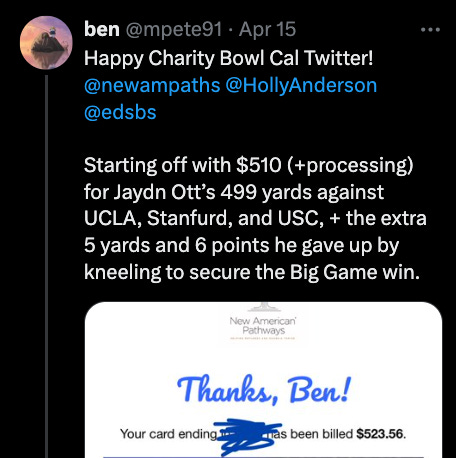 Come on Cal fans, we're $8000 behind!