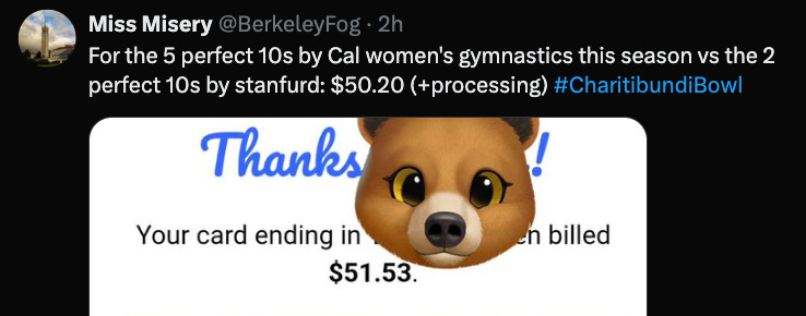 Cal fans, help us beat Stanford fans in the EDSBS Charity Bowl!