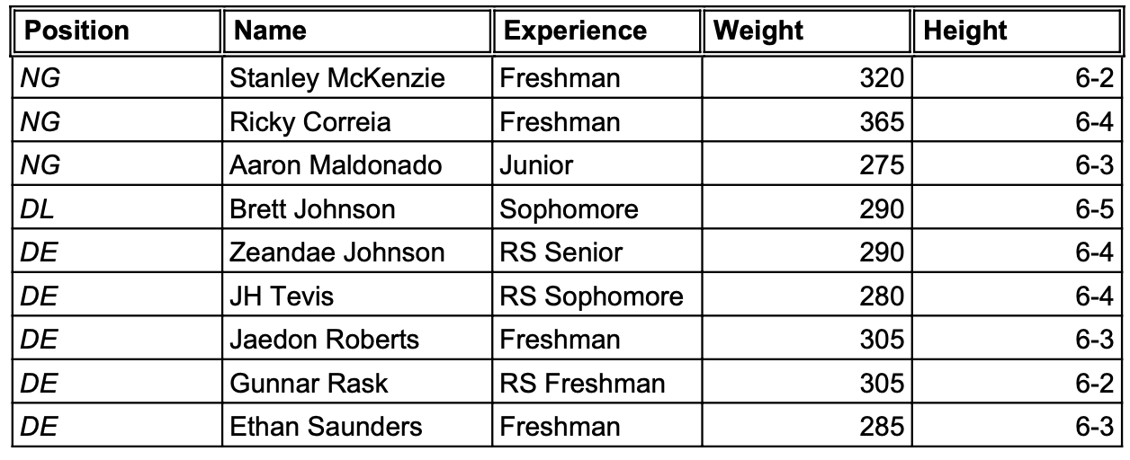 Honestly speaking this is the most optimistic I have been about the DL under Coach Wilcox and probably the most talented. I fully expect them to take a bit of a step back to start the year with so much youth being introduced into the squad, but by midseason, this line could be rounding out into one of the more balanced rotations on the team.