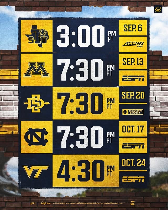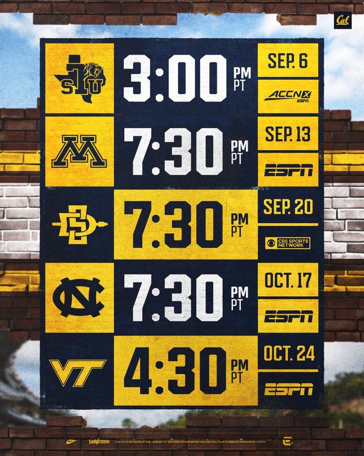 Cal fans, which games are you planning to head to now that you know the times? Let us know, along with your general thoughts on the schedule, in the comments!