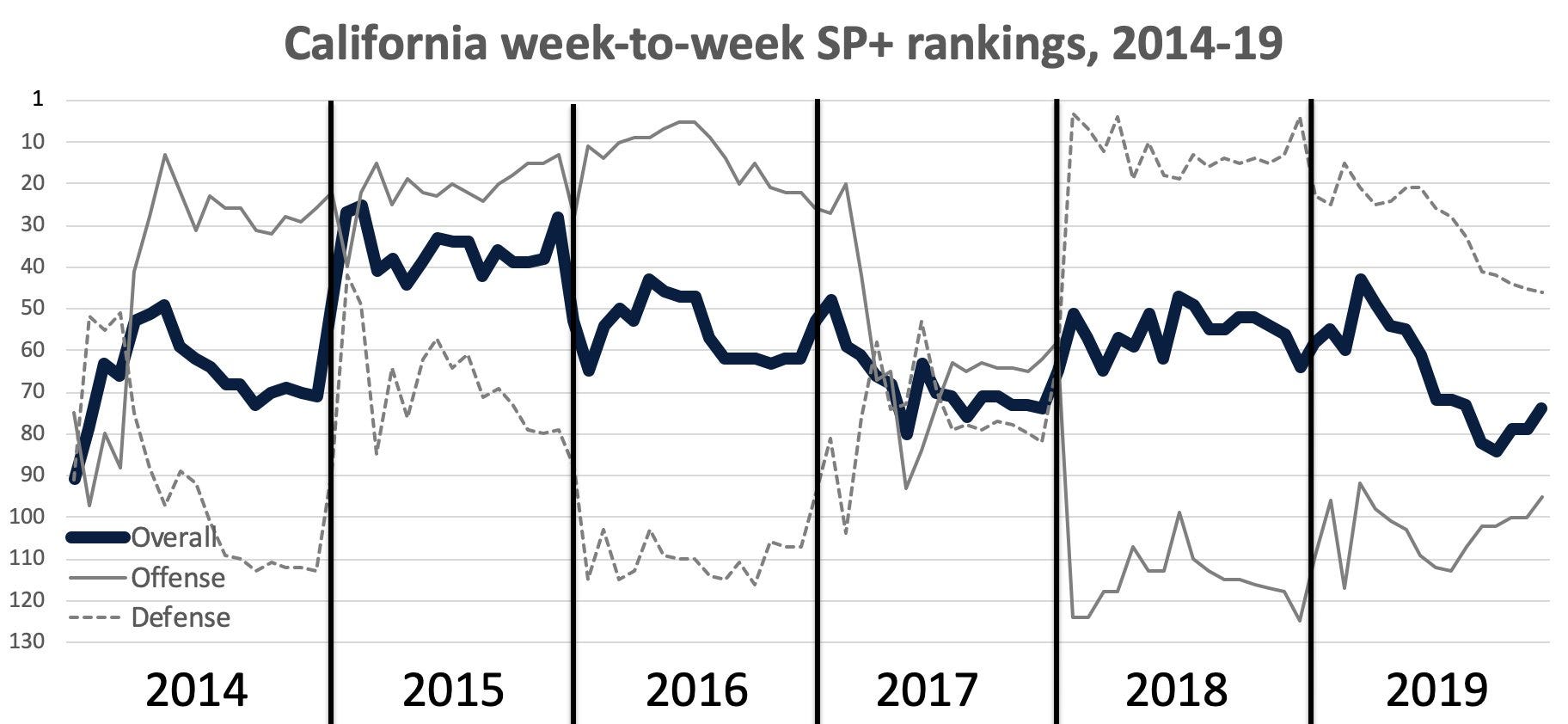 The 2016 Cal O and 2018 Cal D would have been a top-5 team. The 2016 Cal D and 2018 Cal O would have been bottom-15.