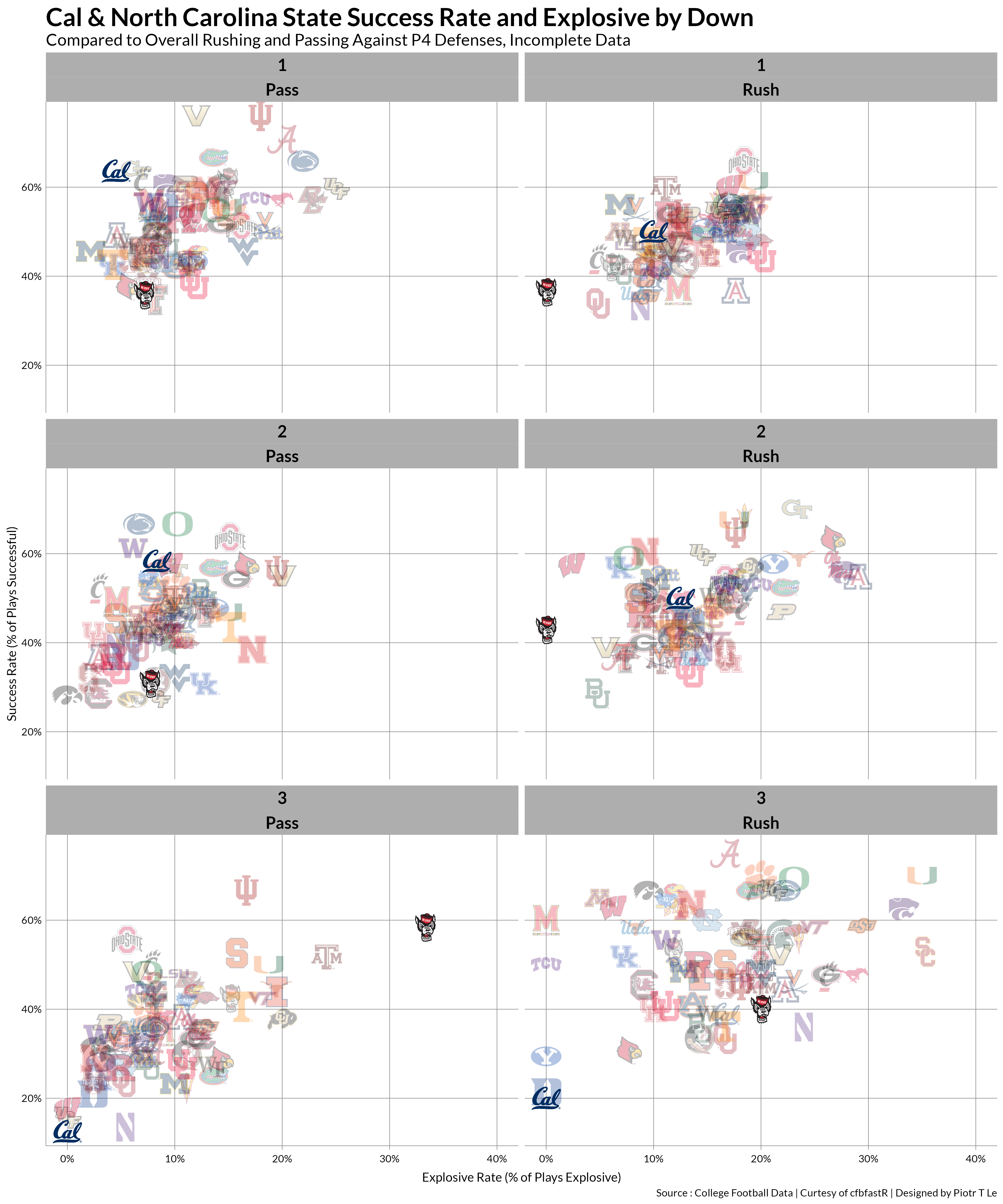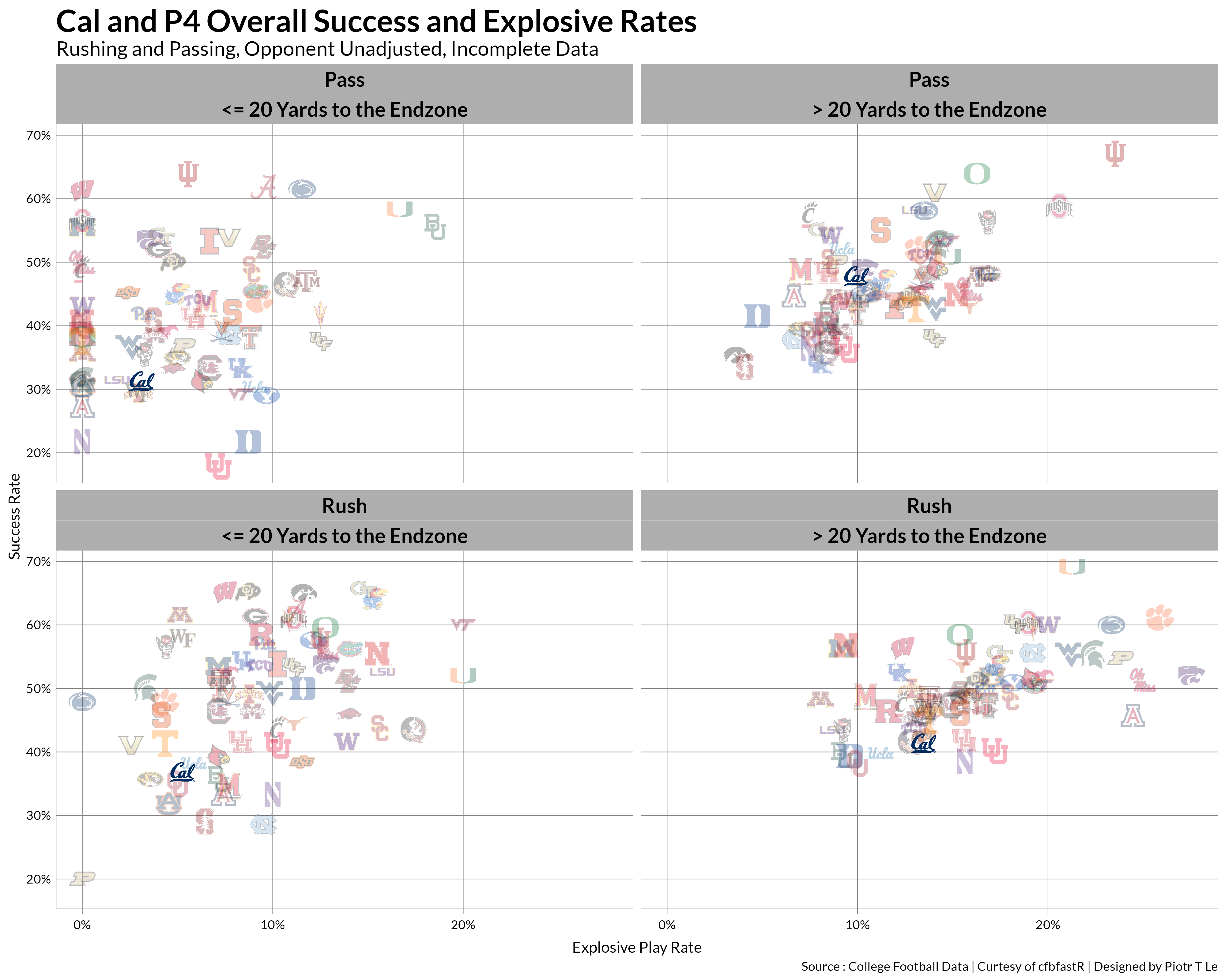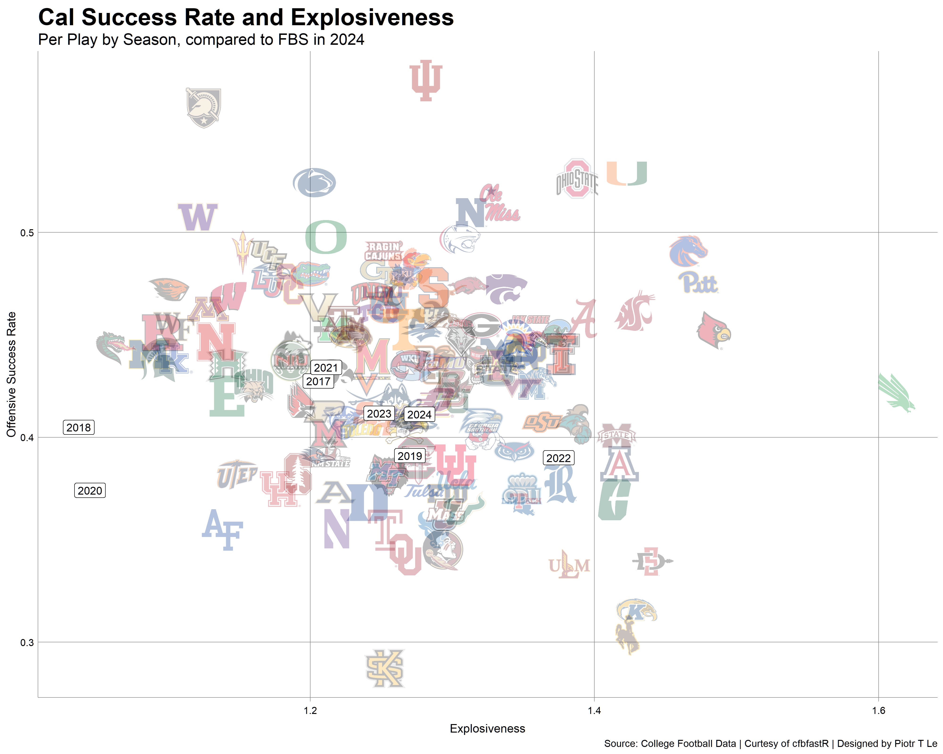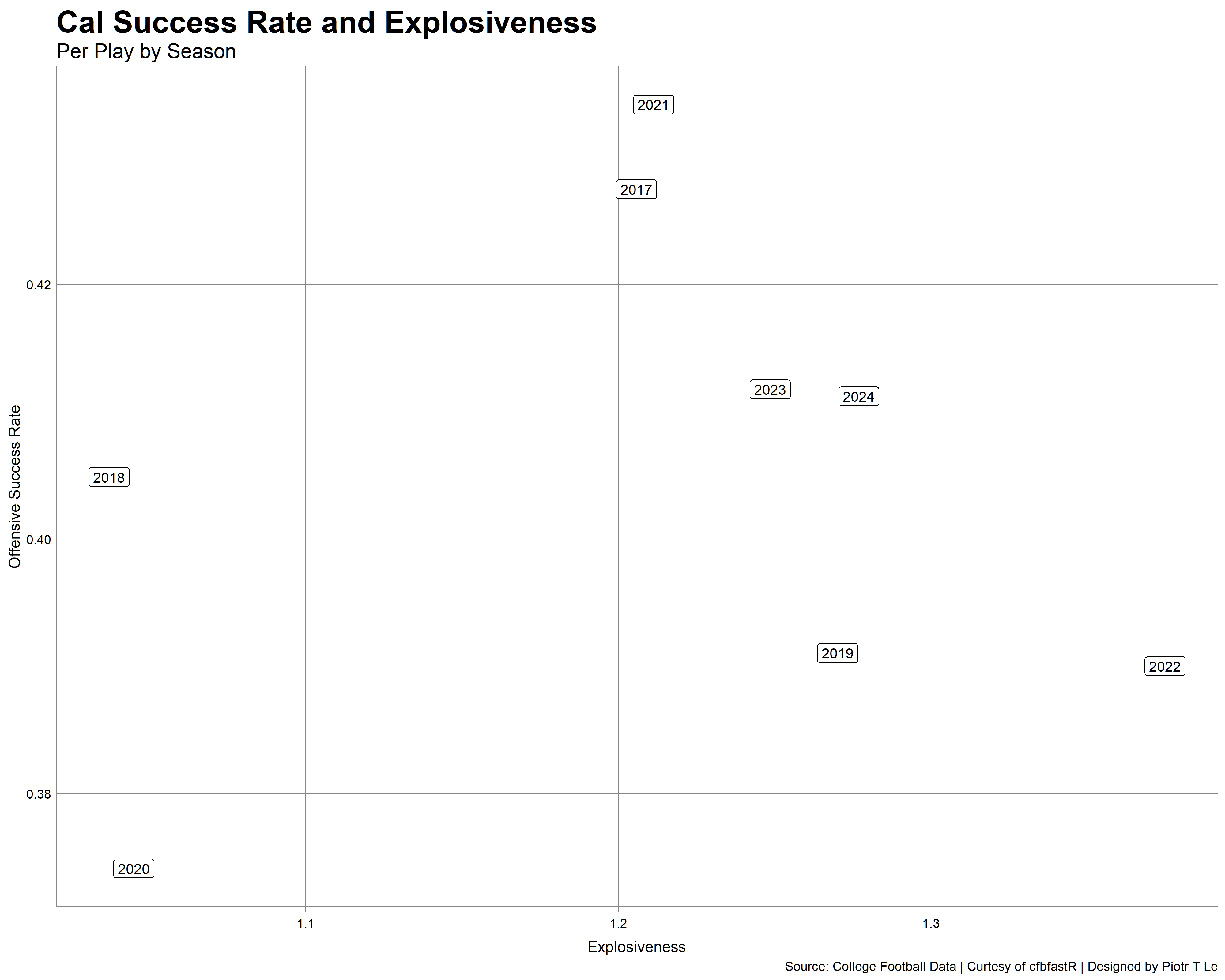 The Cal offense, sans 2018 and 2020 is the same. It keeps having to trade-off explosive plays or success-rate. But we have seen this offense before, yes it arrives via different formations, offensive philosophies...