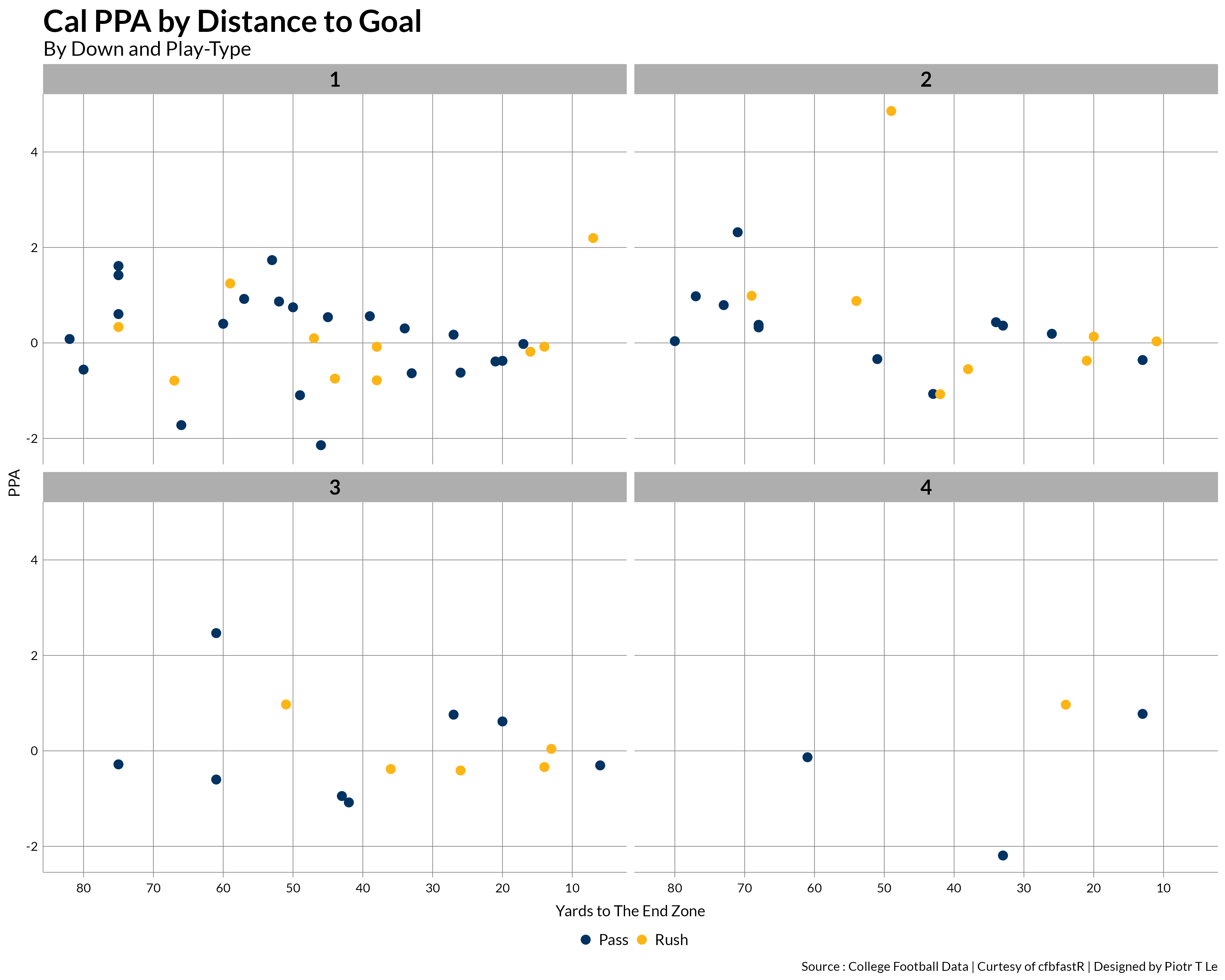 We have been here before. Cal can move the ball, despite on early downs and outside the red-zone, with the run game lagging behind the passing game. Espcially on 2nd downs where we were barely bale to run with the football causing 3rd and long cases where we only covert 2 of 14 of them.