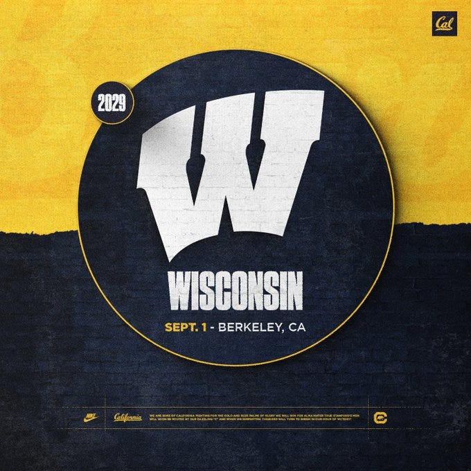 Cal Football’s non conference schedule in the latter part of the decade is starting to round into form. It was announced earlier today that the Golden Bears will be taking on the Wisconsin Badgers in the 2029 and 2030 seasons respectively.