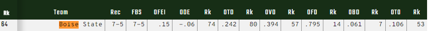 And before that in 2021 his Broncos unit was also in FBS averages: