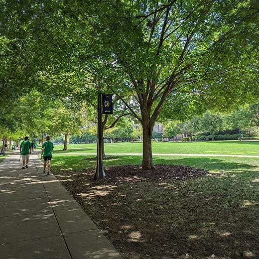The central Notre Dame campus is very large. Too many unnecessary lawns you have to water! Conserve! The superior University of San Francisco understands this.
