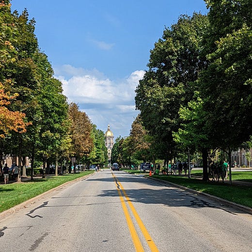 The trip to Notre Dame started out for many people the same way: How do you get to Notre Dame? It’s in the middle of nowhere! Classic America, leaving 80% of the land for corn and things that can make corn.