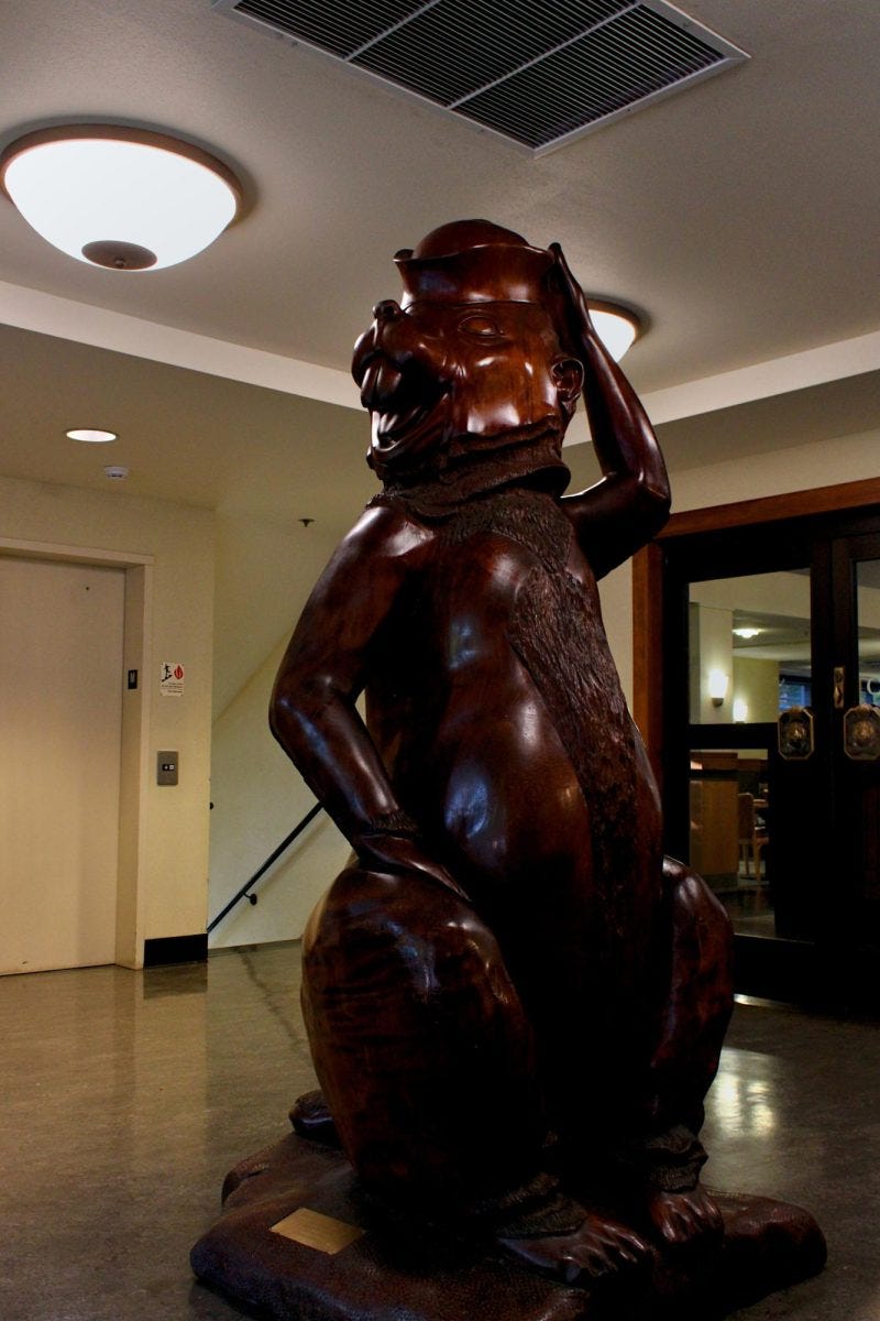 Impressive landmarks: There is a wooden Benny the Beaver statue on campus.