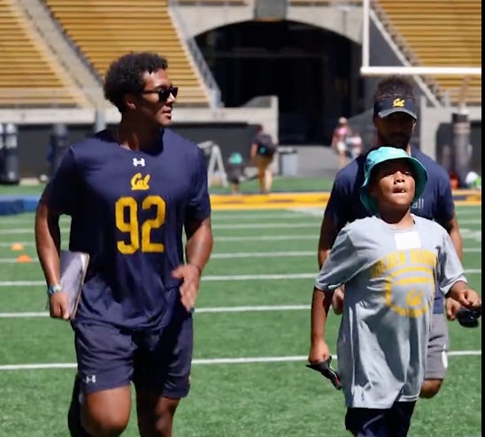 The Cal football team came together two weeks ago to organize a camp for 80 children (aged 6-13) and their families at Memorial Stadium for the Golden Buddies Football Clinic. It was led by offensive lineman Matthew Cindric and linebacker Myles Williams. More from the Daily Cal.