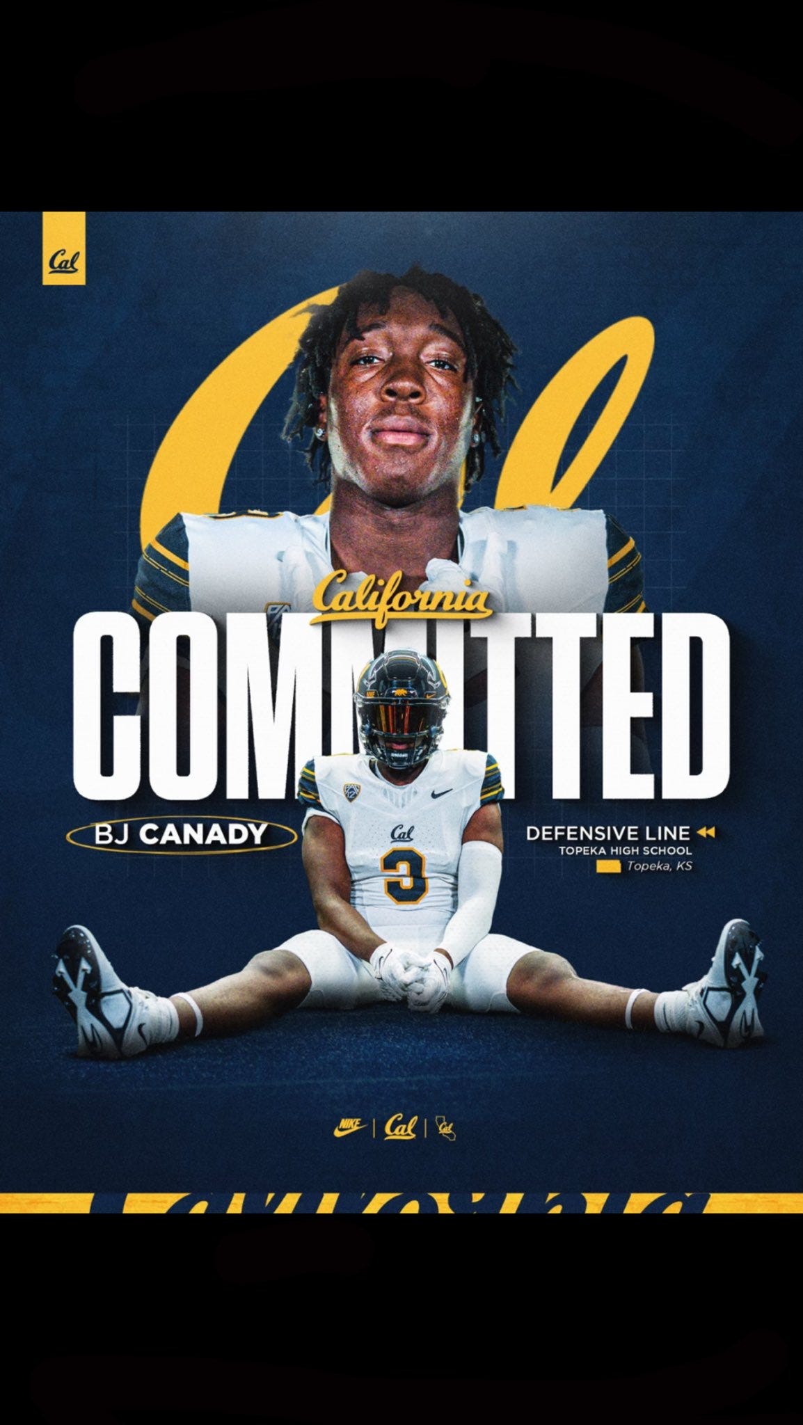 The second commit in as many weeks is in for the California Golden Bears. This time it’s BJ Canady, a three star defensive lineman out of Topeka High School in Kansas.