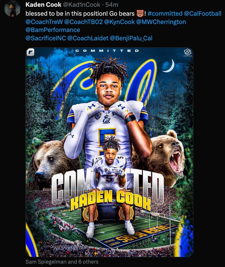 Cal now has three commitments for the 2025 class, as Cook joins running backs Carter Jackson and Jojo Solis.