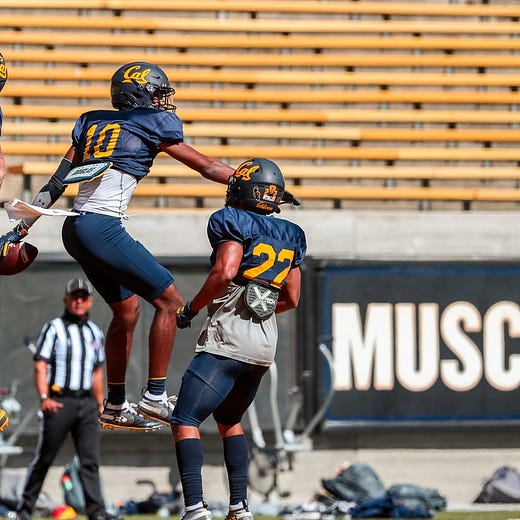 The photos posted on Cal Football’s Instagram also show OLB Patrick Hisatake working against OL Brandon Mello, DE JH Tevis and OLB Cam Goode approaching Garbers, and WR Jeremiah Hunter celebrating a touchdown with WRs Monroe Young and Justin Baker.