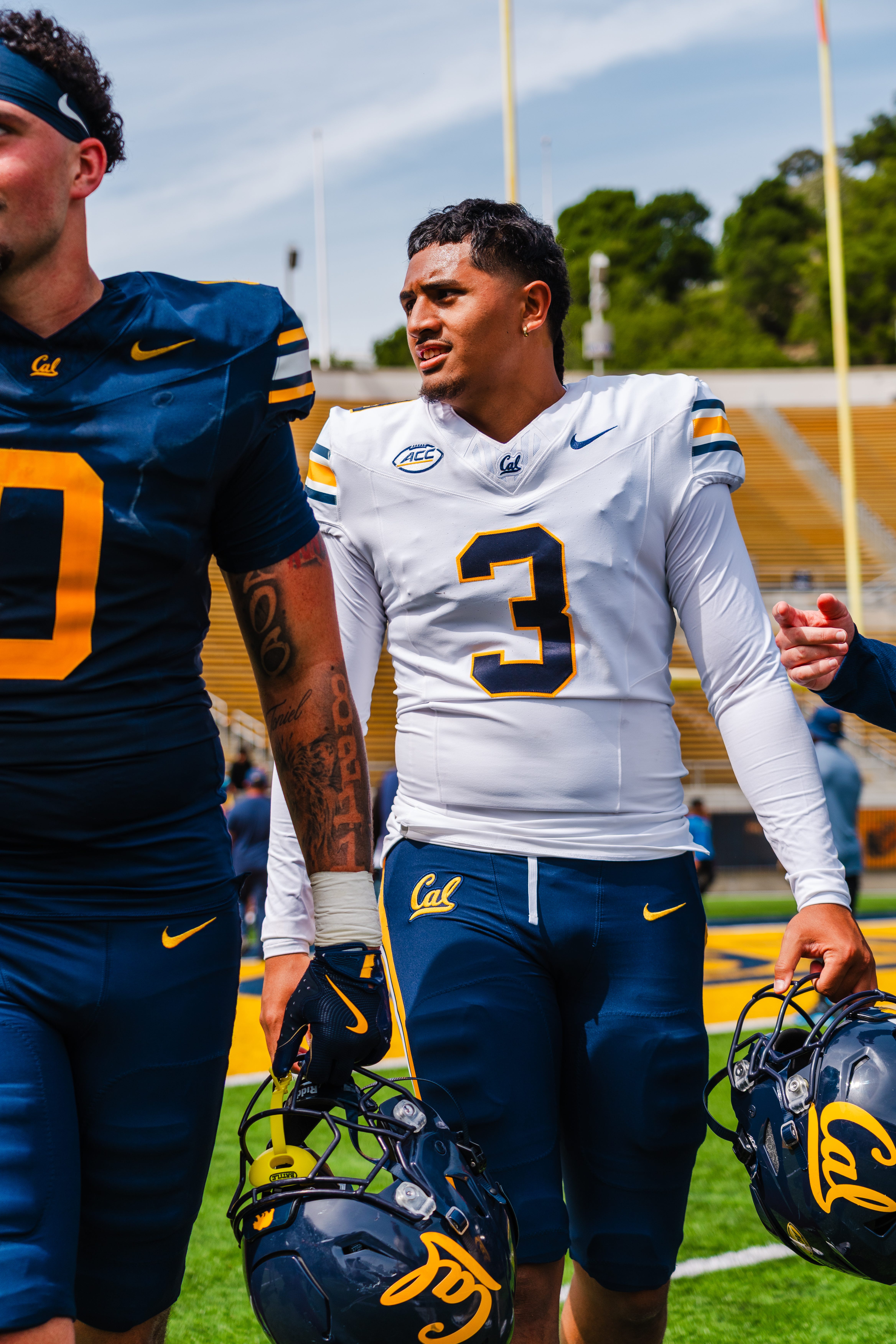 John Tofi (Gold) has also forced his way into the tight end conversation by consistently being in the right place, blocking hard. Between him, Purcell, Mini, Dorian Thomas, and Rico Walker, Cal has one of the legitimately deepest tight end rooms in the time I’ve written about the Bears. The rest of the group, for brevity’s sake, had a pretty workmanlike day at the office (Dorian Thomas did catch an in-breaker for 19 yards and a first down on Jaron’s first drive), but the freshman was the one raising eyebrows.