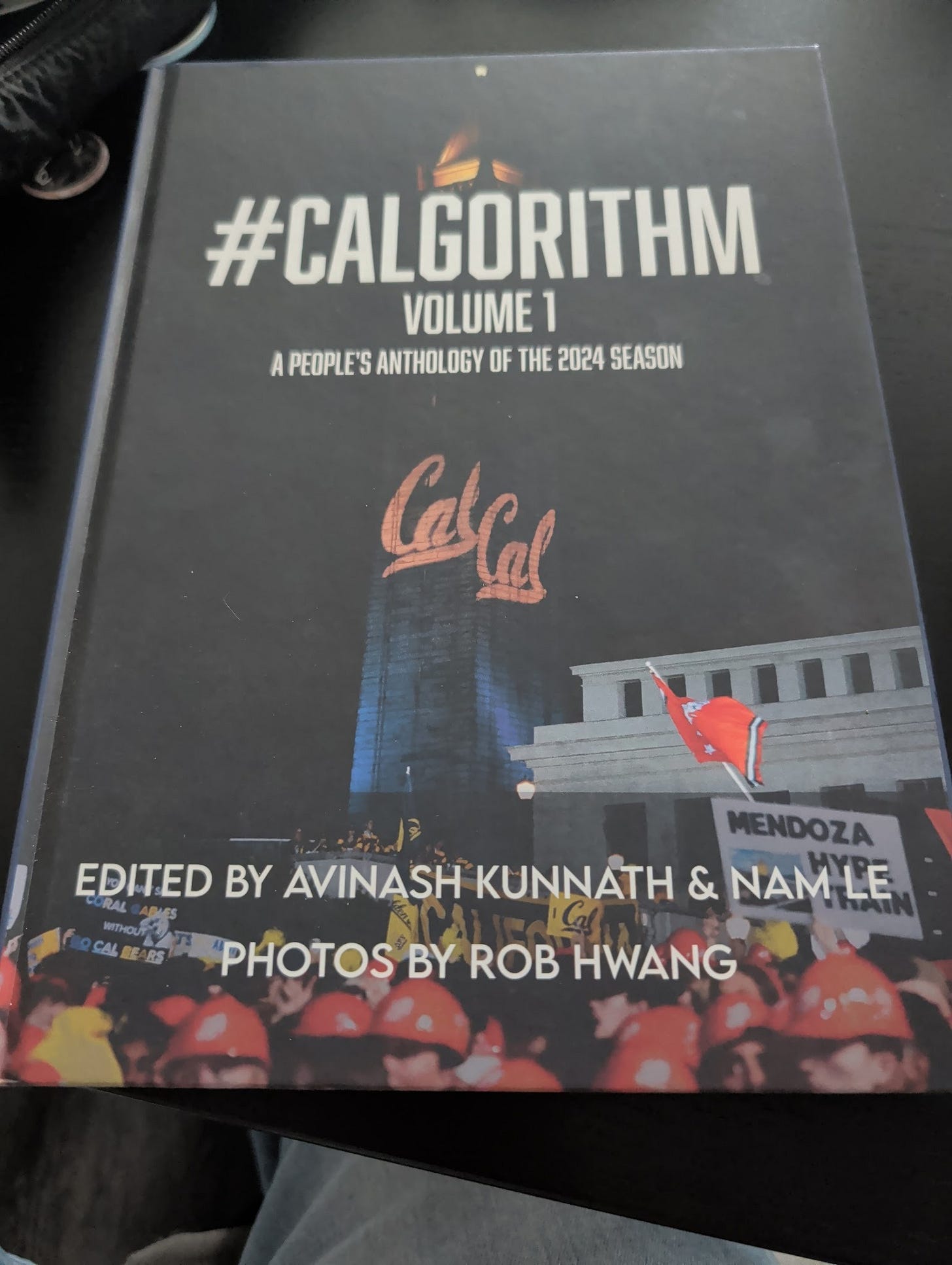What that became was Calgorithm, Vol. 1: A People’s Anthology of the 2024 season, a 297-page hardcover book that we are immensely proud of, because it really represents this community in its totality, memes and all. We have a story from the guy who stormed the field after the Auburn game and spent the night in an Alabama jail cell. We have a story from a Calgorithm member who found himself on the phone with ESPN, pitching #FightForCalGameDay. We have an overarching narrative that spans decades of our fandom, from the days of California Golden Blogs, til today. We have a foreword written by five national level college football voices: Bill Connelly, Kyle Bonagura, Ashley Adamson, Ryan Nanni, and Jessica Smetana. We have given copies to Rich Lyons, Ron Rivera, and Tosh Lupoi with the confirmation at least one has really read it, and an acceptance into the Bancroft archives (and allegedly, the Library of Congress, but that’s a story for later).