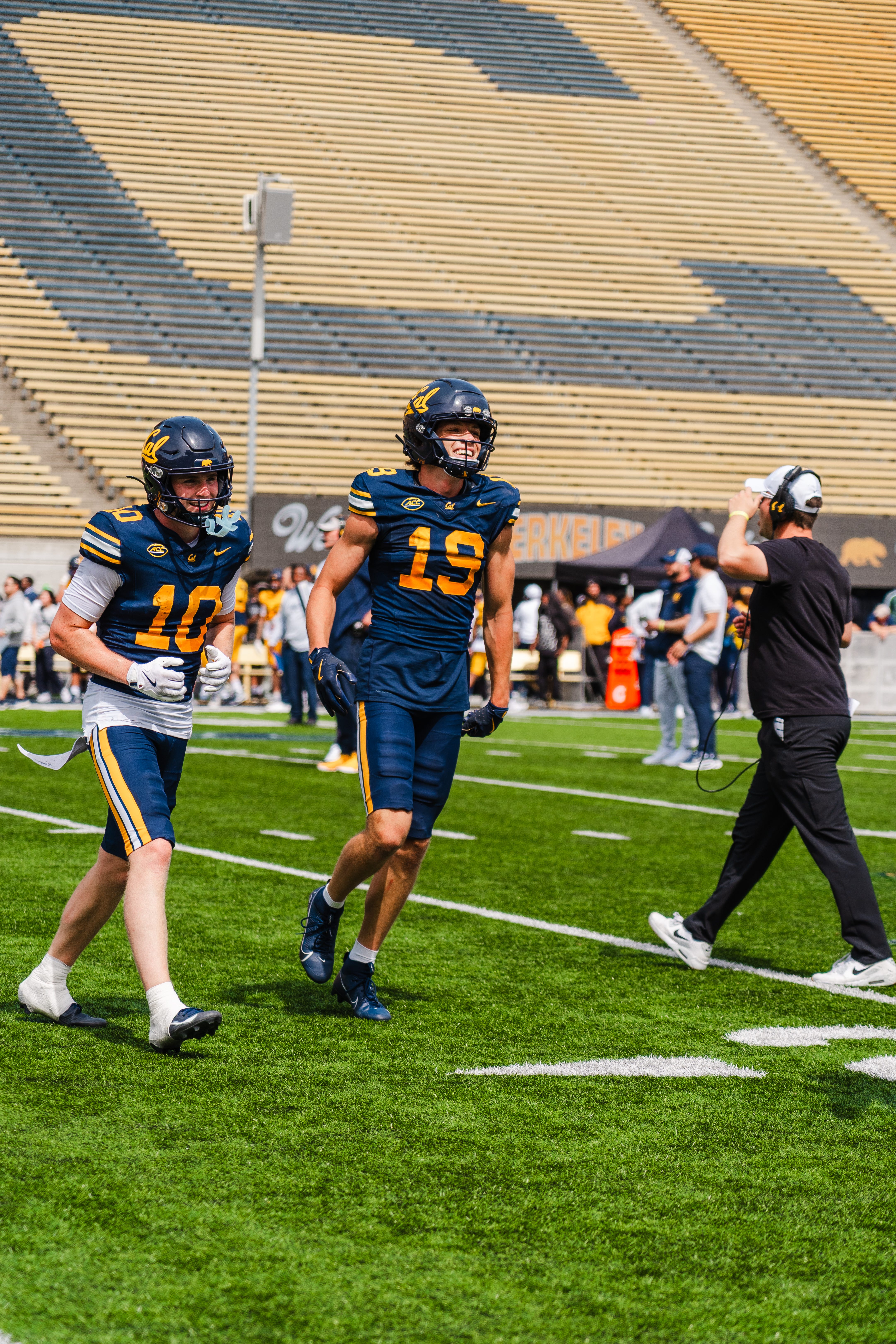 Ian Strong and Chase Hendricks (Gold): The former was pretty quiet playing with the other QBs, but did have a contested pass he ripped out of the air in front of the DB and ran after the catch for 23 yards, and that will become quite familiar to the wider audience in the fall. The latter was definitely more productive on the day, but didn’t hit any explosive plays of his own. A part of why both came to Cal was to catch balls from Jaron, so I expect they’ll make more noise when he’s the one throwing to them specifically.