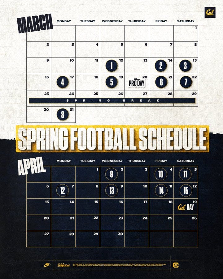 Also sandwiched in-between the spring practice schedule will be Cal Pro Day on March 20, where prospective NFL talents like Craig Woodson, Nohl Williams, Marcus Harris, Teddye Buchanan and more will be showcasing their skills for the professional scouts.