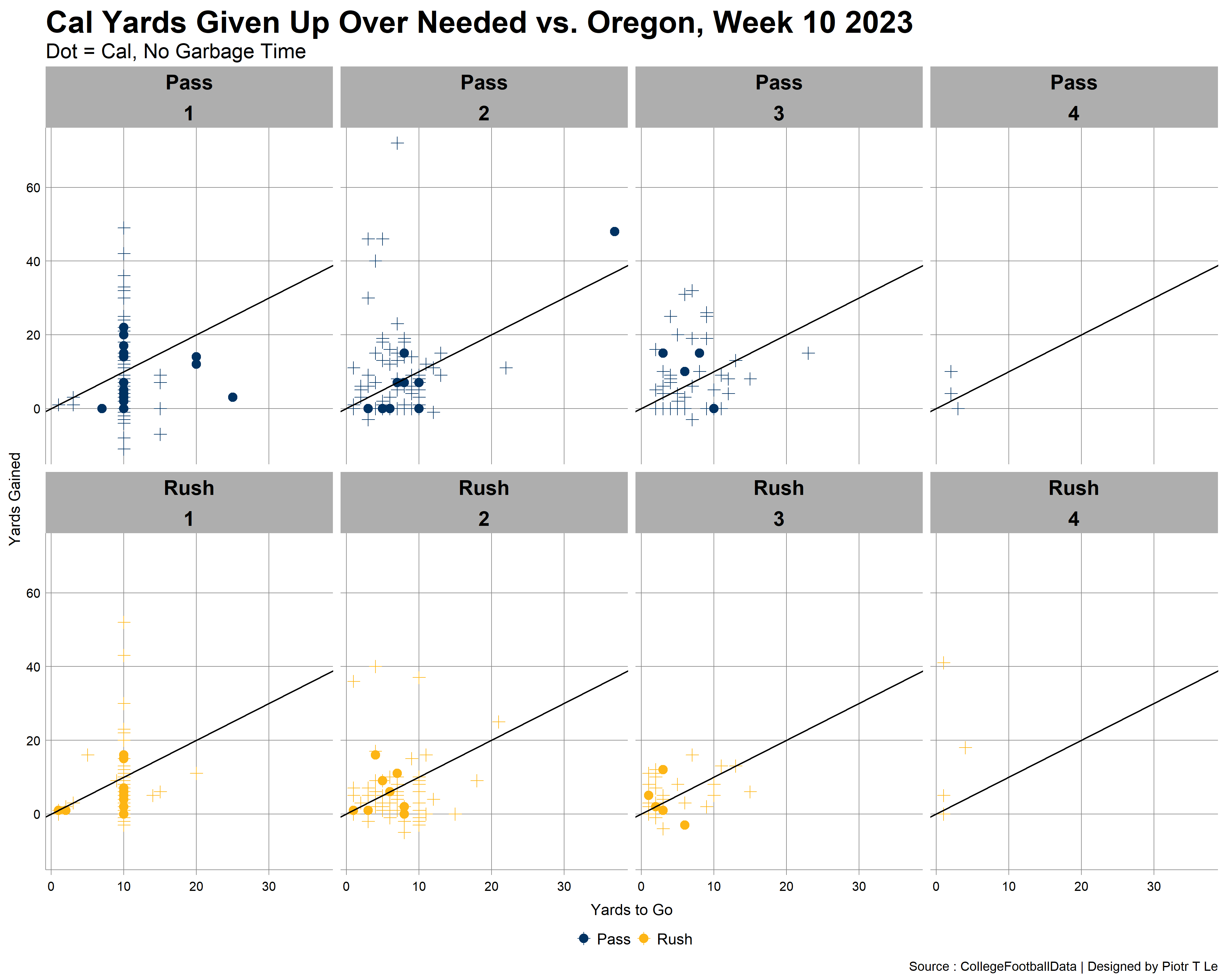 Cal had their moments on first down but Oregon did what we couldn’t against them: make stops on 3rd downs especially when we elected to pass the ball. On the running side of the ball besides 2 runs by Ott we did not have any runs worth talking about. Oregon’s defense just had us as another set of victims for them on their quest to the CFP.