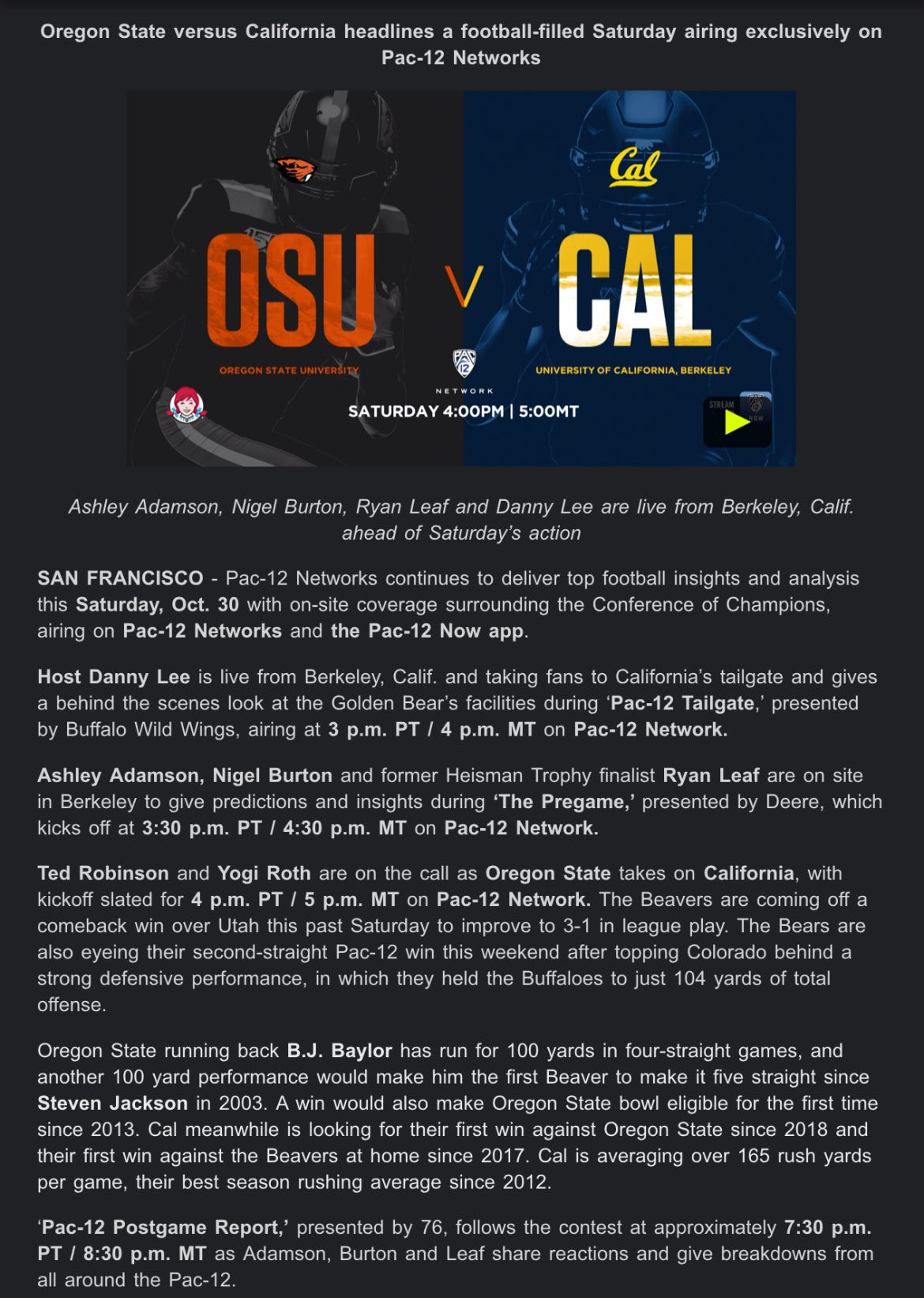 It’s going to be a day in Berkeley. The Bears kick-off against Oregon State at 4PM PT on PAC-12 Networks.
