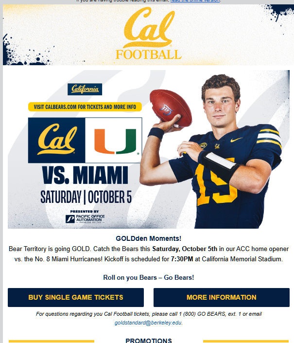 Cal Athletics is requesting fans show up in GOLD shirts and tops. Cal has had a handful of GOLD-outs before but none for a game of this level of significance to the trajectory of the program.