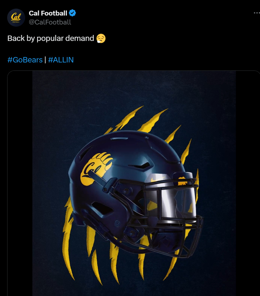 Cal Football To Showcase a Throwback Helmet and Asks for a Gold-Out Against Miami