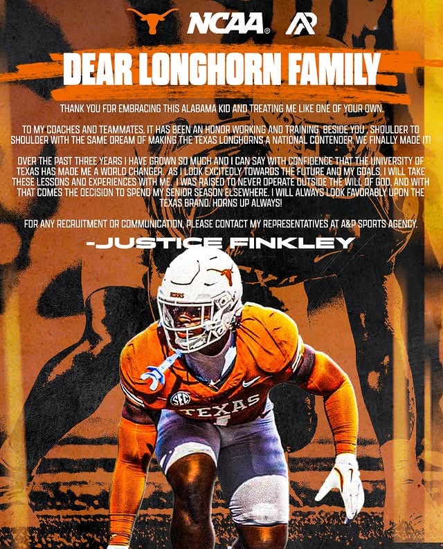Matt Zenitz reports that Texas defensive lineman Justice Finkley will take a trip to Cal this week. Finkley will have one year of eligibility remaining. In his career at Texas, he’s piled up 26 tackles, 3.5 TFLs, 2.5 sacks, and 1 forced fumble.