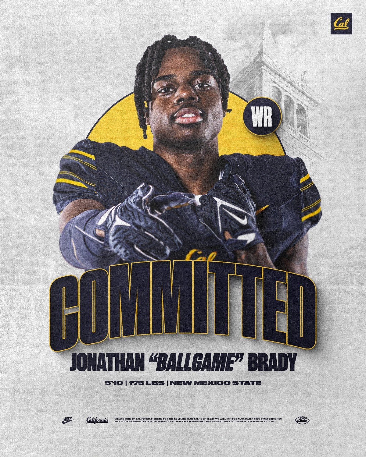 The California Golden Bears have stocked up on wideouts this portal season, and got another huge commitment from Jonathan Brady out of New Mexico State.